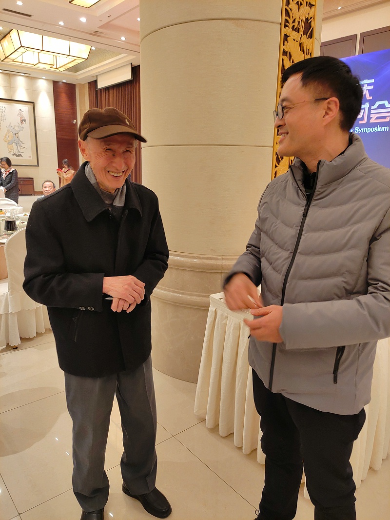 ▲《塑料工業》首任主編邱有德老先生與王總共話友情