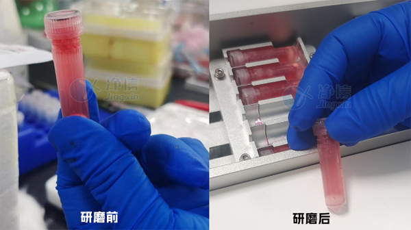 小鼠肺組織樣品的前處理研磨實驗前后效果圖